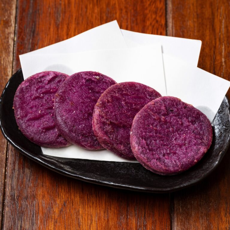 かつての人気メニュー、紅芋コロッケを凌ぐ勢いでリピーターが増えている逸品。紅芋の鮮やかな紫色と、素朴な甘みがクセになります。